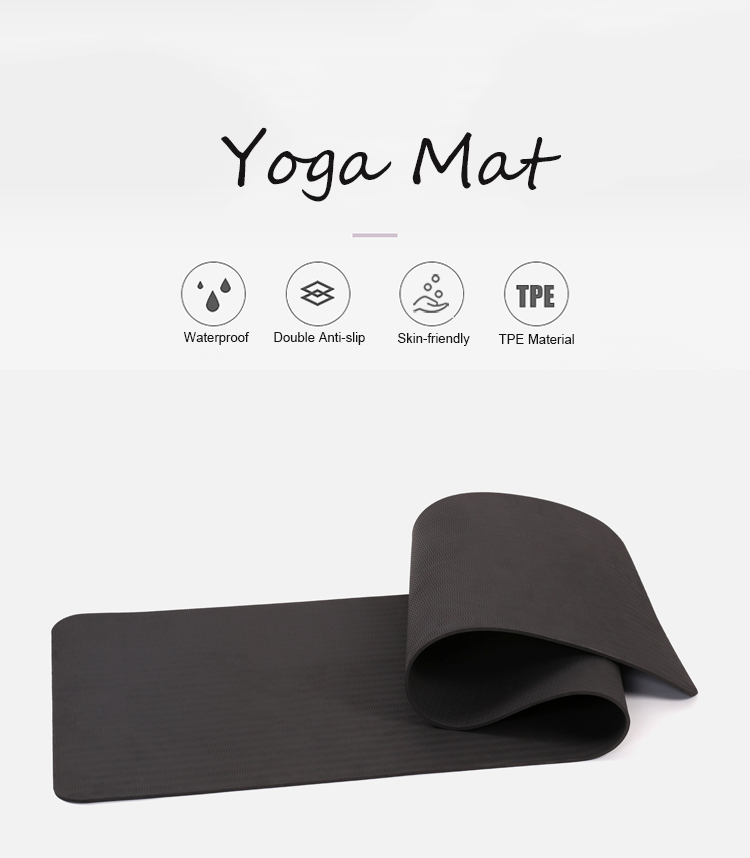 - Single Color Pure Black Custom Folding Durable TPE Yoga Mat